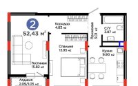 52.43 м², кухня – 9.9 м²