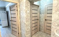 Линолеум, натяжные потолки, новые межкомнатные двери, окна ПВХ.