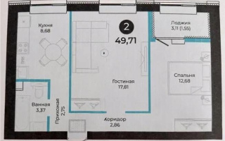 2-комнатная студия