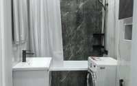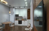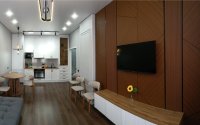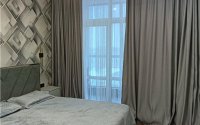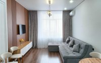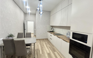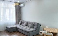 В квартире выполнен качественный ремонт из дорогостоящих качественных материалов, раздельная планировка, витражные панорамные окна, лоджия кухня-студия, кондиционер, совмещенный санузел.