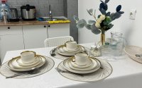 Полностью укомплектованная кухня (микроволновка, плита, холодильние,вся посуда).