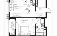 Общая площадь — 55,3 м². Класс жилья — Комфорт+. Квартира с удобной и функциональной планировкой, отлично подходит для комфортного проживания. Современный проект с закрытой территорией и благоустроенным двором.