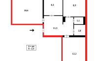 Общая площадь 64 кв. м. кухня 9 кв. м.