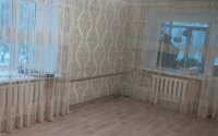 В квартире сделан Косметический ремонт, все окна застеклены, на полу линолеум, стены выровнены и поклеены обои, сан узел совместный, в квартире остается кухонный гарнитур, балкон застекленный