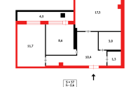 • Общая площадь — 57,5 м²