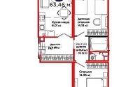Продажа 3-комнатной квартиры, 63.46 м²