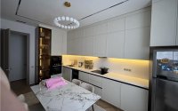 Внутри выполнен современный дизайнерский ремонт в стиле минимализм с качественными материалами: искусственный камень, ламинат «елочка» и итальянский керамогранит.