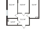 77.6 м², кухня – 16 м²