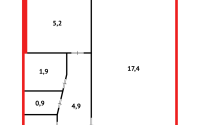Общая площадь 30кв.м/кухня 5,2кв.м.