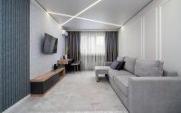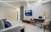 Новая люкс-квартира с ремонтом, мебелью и техникой. В квартире есть двуспальная кровать, диван, 2 ТВ, Wi-Fi, кондиционер и лоджия.