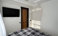 Мебель также входит в стоимость: двуспальная кровать с подъемным механизмом, раскладной диван, встроенный кухонный гарнитур и шкаф в прихожей.