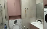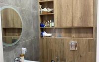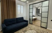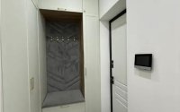 Потолки 3 метра, межкомнатные двери 2,2 метра, стены выровнены и покрашены моющейся краской, керамогранит. Электрика продумана — много розеток и сценарии света. Окна выходят на улицу Бокейхана.
