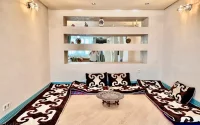 ✔️Размер зала - 85, 2 кв. м, где на углу расположен уютный казахский топчан.