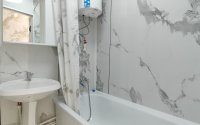 -Сан узел отделка стен пластиковые панели, полы керамогранит, электротитан