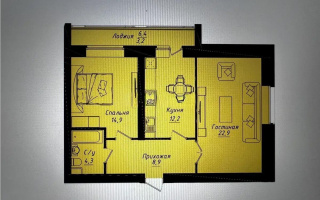 64 м², кухня – 11.1 м²