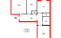 • Общая площадь: 61.2 кв. м ,кухня 8 кв.м.
