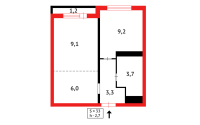 33.5 м², кухня – 9.6 м²