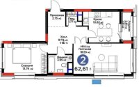 Продажа 2-комнатной квартиры, 62.61 м²