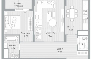 62 м², кухня – 13.6 м²