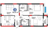 85.12 м², кухня – 12.77 м²