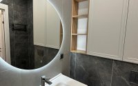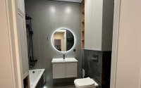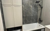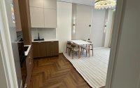 Полностью меблирована, двуспальная кровать с подъемным механизмом, имеется вся бытовая техника (холодильник, духовой шкаф, микроволновая печь, варочная поверхность, посудомоечная машина, стиральная машина, вытяжка). Все новое, на гарантии.