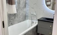 В квартире две отдельные спальни и просторная гостиная, два санузла. Есть встроенная кухня, новая сантехника, кондиционер и все необходимые счётчики.