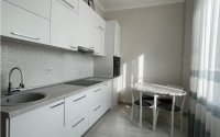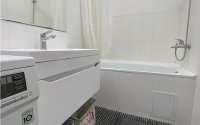 Светлый минималистичный ремонт создаёт ощущение простора и позволяет легко добавить яркие акценты по своему вкусу. В квартире уже есть вся необходимая техника: холодильник, духовой шкаф, варочная панель и вытяжка — всё бренда Bosch.