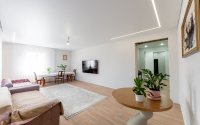 Дом (361,9кв.метров) построен из газоблока, крыша покрыта металлочерепицей. Высота потолков — 3 м.
