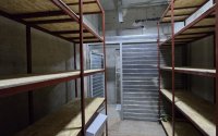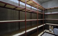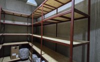 Кладовая полностью оборудована прочными стеллажами.
