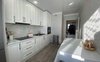 В квартире сделан качественный ремонт в светлых тонах, пластиковые окна, натяжные потолки, на полу линолеум, чугунные радиаторы, новые современные межкомнатные двери.