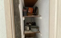 Санузел раздельный и выложен кафелем, пластиковые трубы, счётчики воды. Также есть кладовая в коридоре и в подъезде на площадке, что непременно порадует хозяйку. входная дверь металлическая высокого качества.