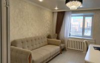 Екі бөлмелі пәтер сатылады, он кабатты уйдің 2 кабатында орналаскан, уйдің ауласында мектеп бар.