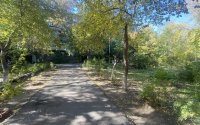 Зелёный и уютный двор с парковкой для автомобилей и скамейками для отдыха.