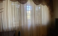 Пластиковые окна, на полу линолеум, потолки под яйцо.