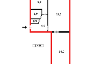 Общая площадь 44.5кв.м. Кухня 6.1 кв.м.
