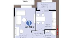 37.48 м², кухня – 10.3 м²