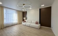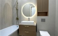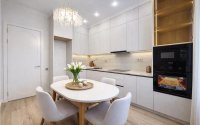 Вся мебель из МДФ, кухня полностью укомплектована техникой (варочная поверхность, духовой шкаф, микроволновая печь, вытяжка) — остаётся новым владельцам. Установлена сантехника с инсталляцией Grohe.