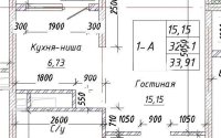 34.4 м², кухня – студия