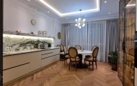 Интерьер выполнен с акцентом на современную классику и премиальные материалы, что подчеркивает статус жилья. Квартира идеально подойдет как для комфортного проживания семьи, так и для современного ритма жизни.