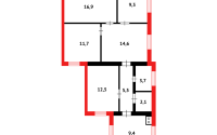 Жилые комнаты: 16,9 / 14,6 / 11,7 / 9,3 м²
