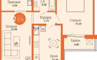 Продажа 2-комнатной квартиры, 58.74 м²