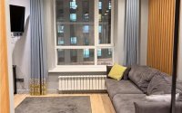 Пластиковые окна, кухня-студия, тихий двор. Интерьер продуман до мелочей: стильное сочетание цветов и материалов, качественная мебель и техника, грамотная планировка пространства, современное освещение и акценты.