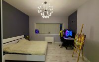 Квартира просторная - большая гостиная с гардеробной и с мягкой зоной кухни . И большая спальня )