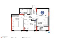 64.37 м², кухня – 11.97 м²
