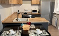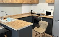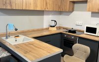 Полностью укомплектованная кухня (микроволновка, плита, вся посуда).