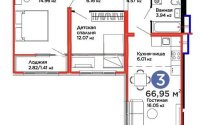Продажа 3-комнатной квартиры, 66.95 м²
