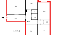 -Общая площадь - 78 кв м, просторная кухня - 8,5 кв.м.