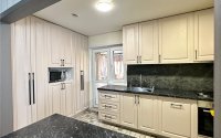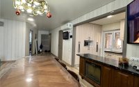 Кухня разделена на рабочую и гостиную зоны.