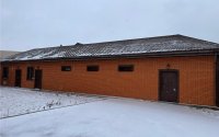 Материал стен - бетонные блоки облицованные кирпичом. Мягкая кровля.