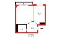 Квартира площадью 34 м расположена на комфортном 7 этаже из 13
